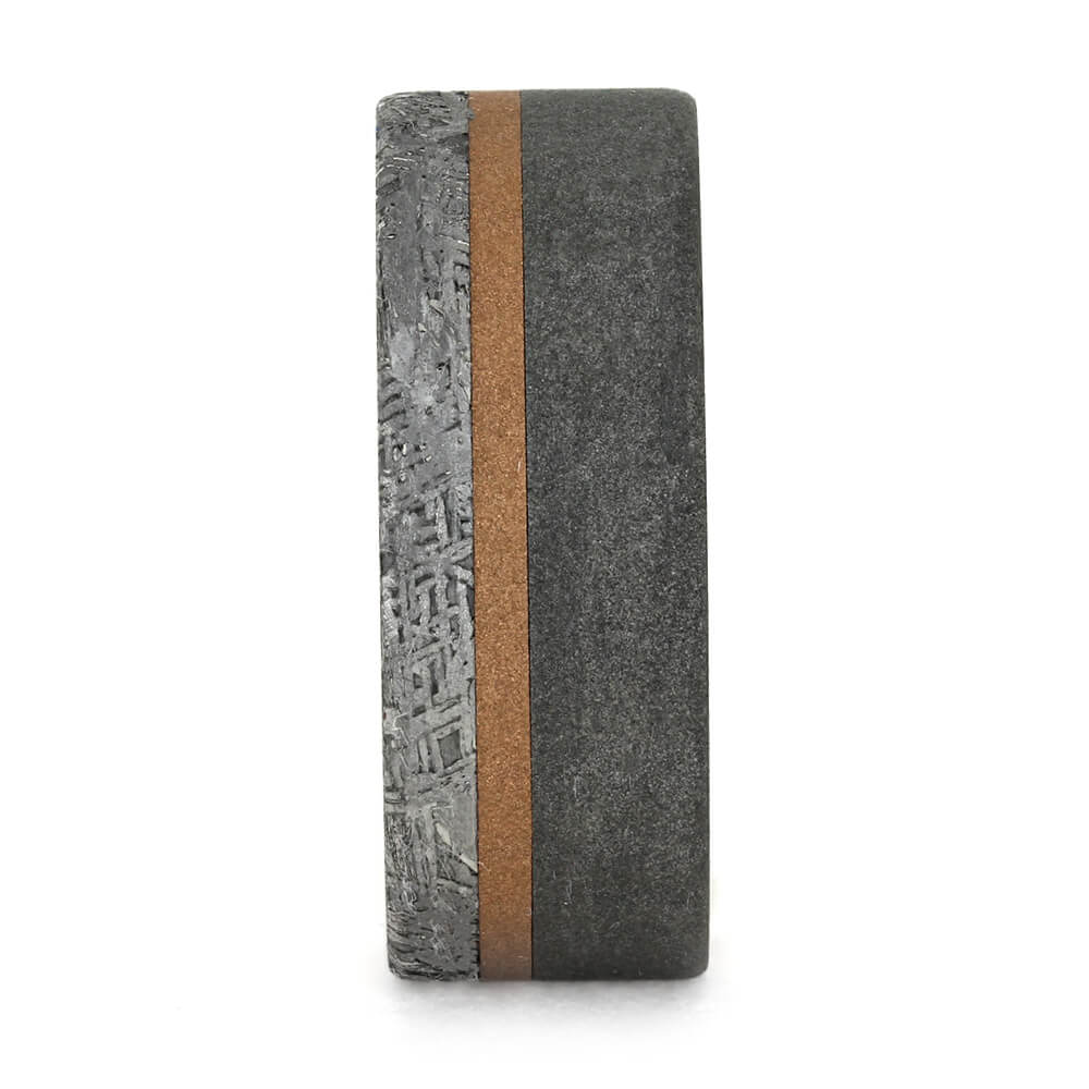 Materials in Men's Meteorite Wedding Ring With Rose Gold And Sandblasted Titanium