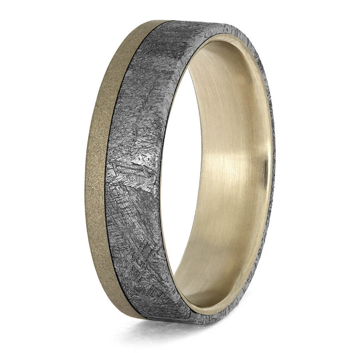 Materials in Meteorite and Sandblasted White Gold Wedding Band