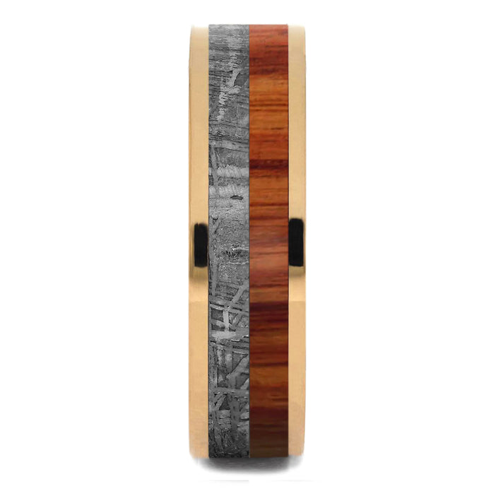 Meteorite & Exotic Wood Men's Wedding Band, Tulipwood Ring