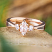 Marquise Cut Moissanite Engagement Ring With Dinosaur Bone Inlay