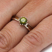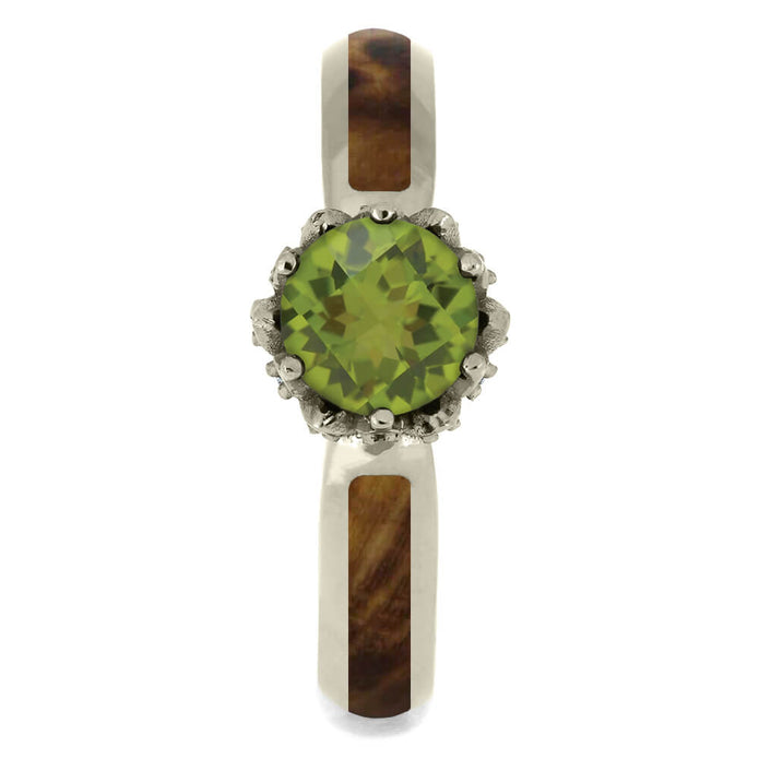 Peridot Engagement Ring with Diamond Lotus and Black Ash Burl Wood