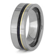 Materials in Sapphire Birthstone Wedding Band in Tungsten with Gold Pinstripe