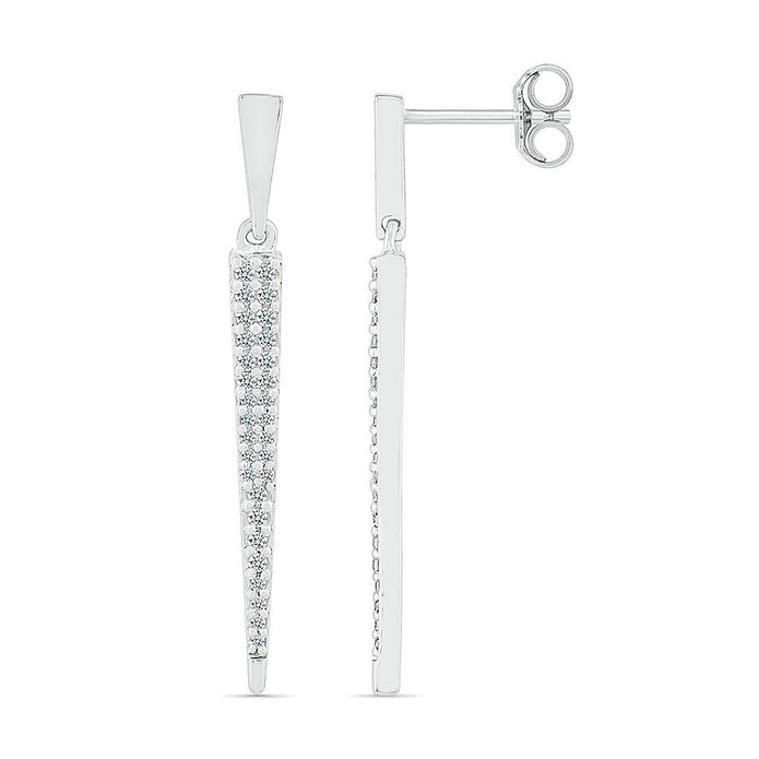 Stun your special someone with these statement dangle earrings! Glistening round-cut diamonds accent the beautifully crafted dangle earrings. These earrings are available in sterling silver or yellow gold and are sure to become a staple in your jewelry collection.