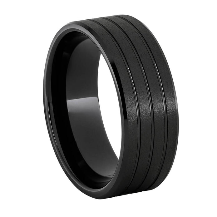Materials in Stone-Finish Black Ceramic Band with Grooves