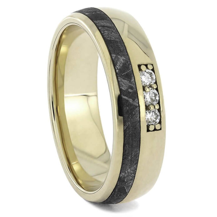 Materials in Three Stone Wedding Band for Men with Meteorite