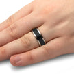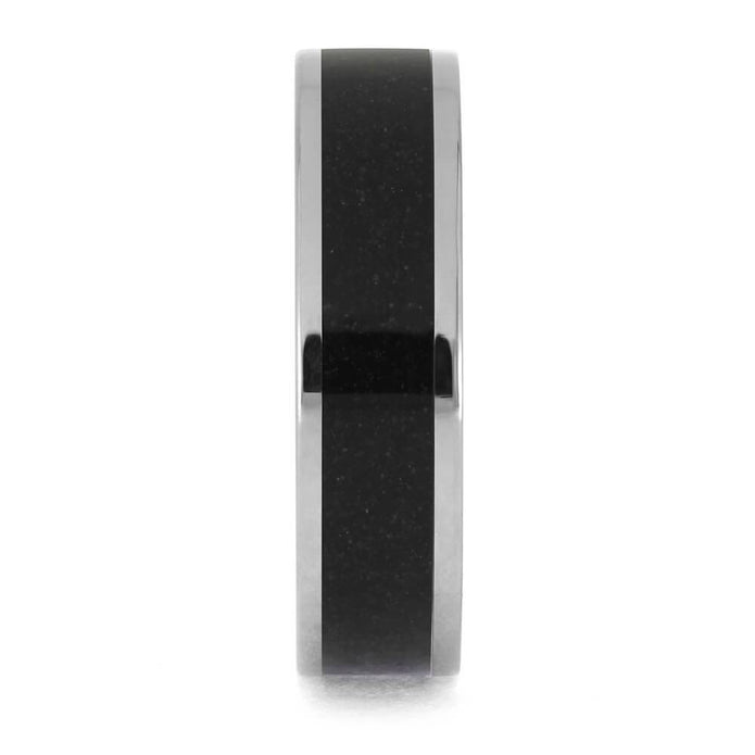 Dark, mysterious, and inspired by the Earth, this black sand wedding band is the perfect choice for any outdoors enthusiast! This unique titanium ring is crafted with a black sand inlay. The lightweight titanium construction is 100% hypoallergenic and contrasts beautifully with the dark inlay.