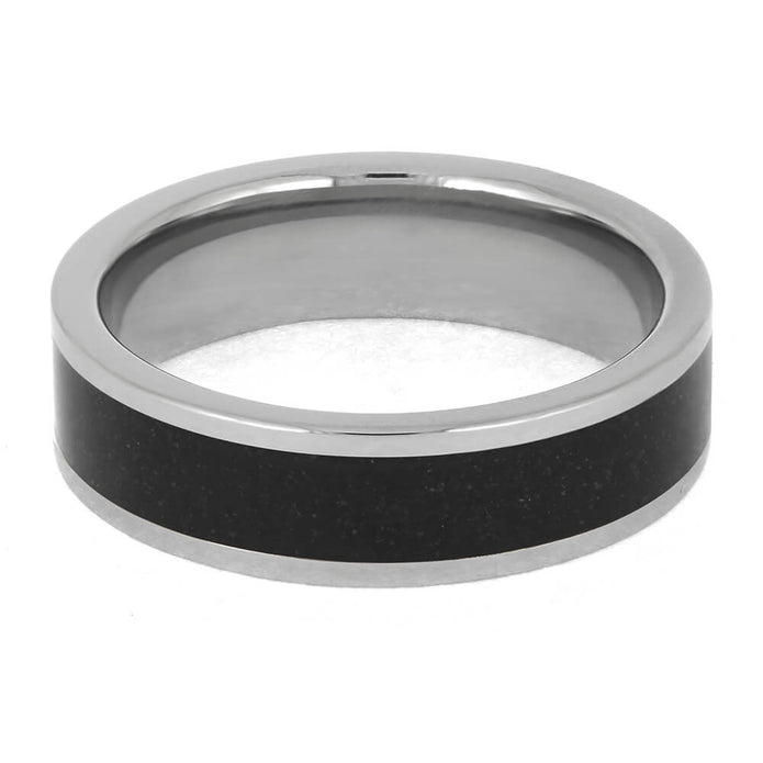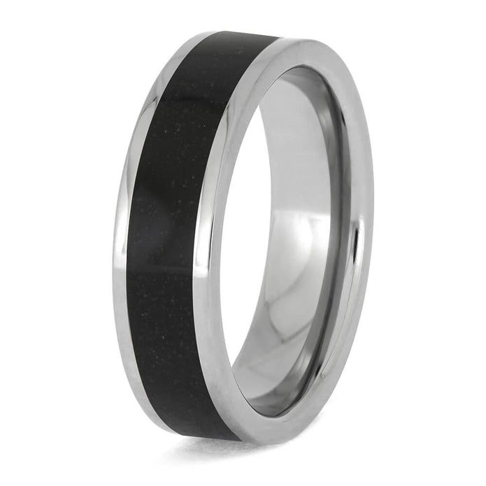 Materials in Men's Titanium Wedding Band with Black Sand Inlay