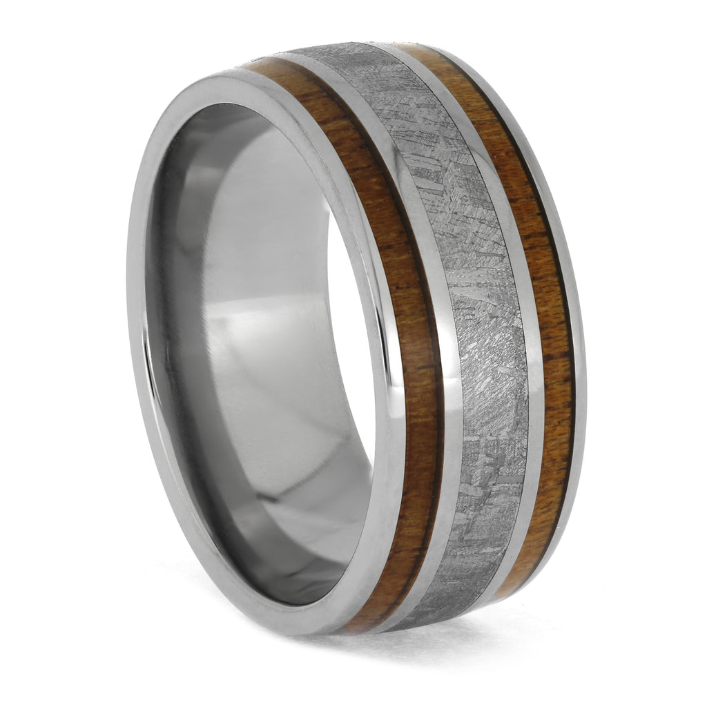 Titanum Ring with Meteorite and Wood Inlays