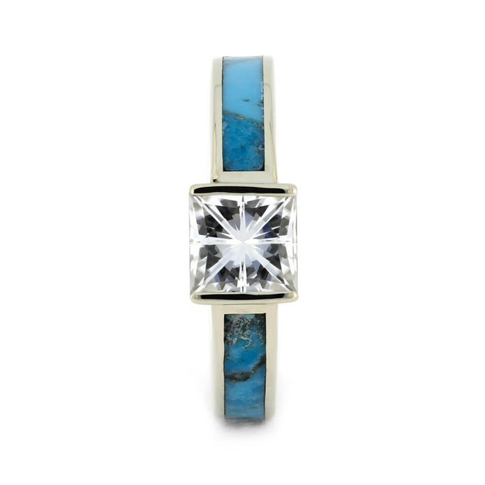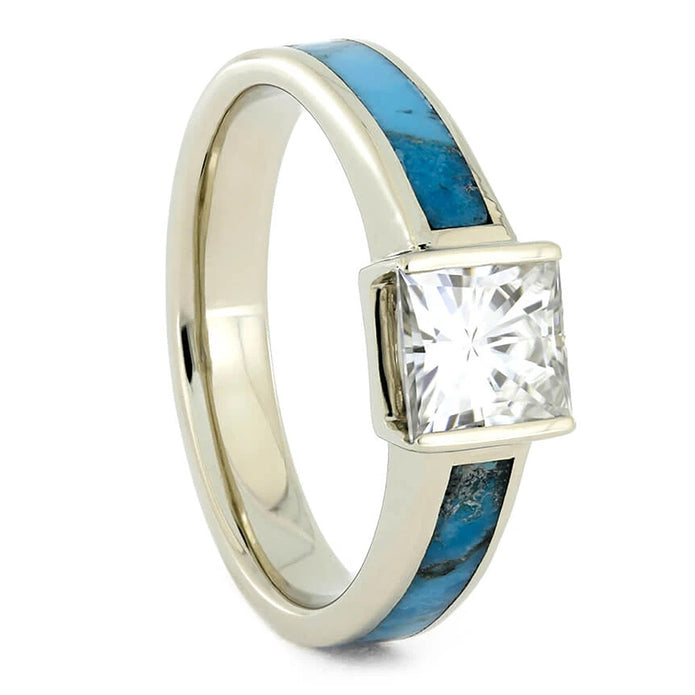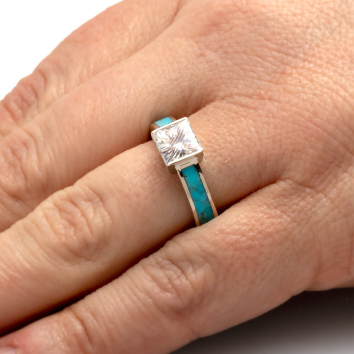 Princess Cut Engagement Ring With Kingman Turquoise