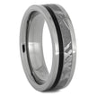 This Gibeon meteorite wedding band features a channel of African blackwood. This double inlay wedding band can be worn regardless of gender.