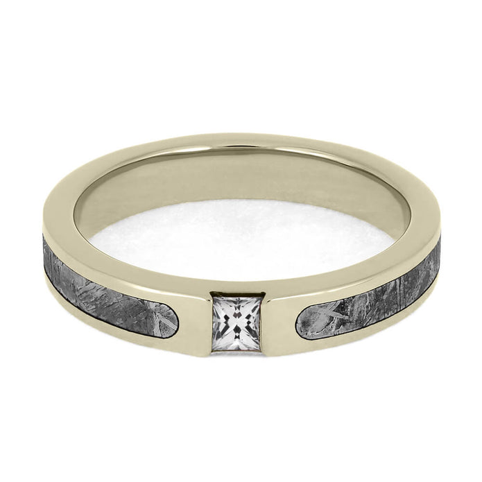 Materials in White Sapphire Band with Meteorite Inlay