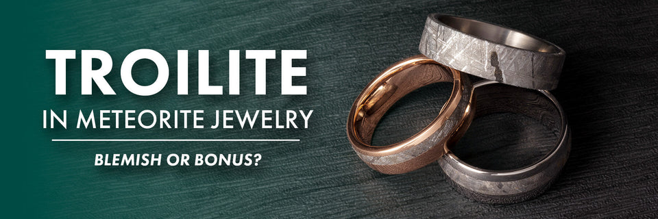 If you find yourself troilite indifferent, you can forego the troilite-free meteorite upgrade and roll the dice with a meteorite engagement ring or meteorite wedding band. If you prefer no troilite, the odds are in your favor! Most of our rings and other accessories are crafted with pieces of meteorite that ultimately result in no visible troilite nodules. And let's be real, no matter what, you're guaranteed to end up with a one-of-a-kind ring handcrafted from 4 billion year old rock that survived a journey to Earth from outer space.