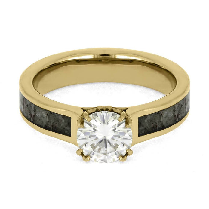 Unique Engagement Ring With Antler Inlay in Yellow Gold
