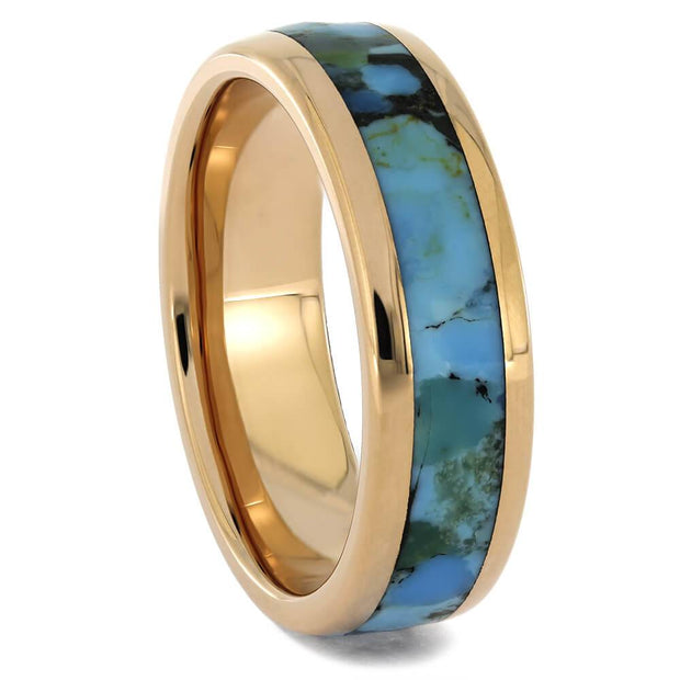 You can opt for two styles of turquoise: solid or crushed. Crushed inlays boast a more subtle charm, and are sealed and protected with our Ring Armor coating to ensure they can’t be damaged easily. If you don't see a design that's the perfect fit for you, contact us about custom rings or browse our website for a design you love to customize. Stunning metal pairings include our meteorite rings, exotic woods and more.
