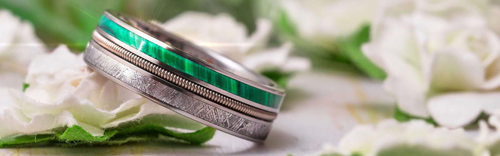 Discover handcrafted green meteorite rings featuring genuine meteorite inlays paired with striking green accents. Each ring is one-of-a-kind, made with unique materials and available in customizable designs for a standout, modern look.