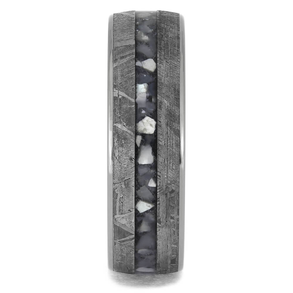 Meteorite Wedding Band with Crushed Mother of Pearl
