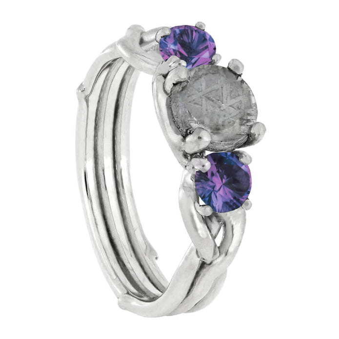 Three Stone Alexandrite & Meteorite Engagement Ring