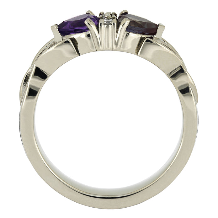 Double Heart Cut Birthstone Ring with Meteorite Inlay