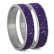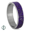 In this purple wedding band, our Stardust™ interchangeable inlay component is the shining star...literally. Genuine meteorite shavings are nestled in enamel to create Jewelry by Johan's unique Stardust™ material.