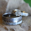 Meteorite Wedding Ring Set with Rough Diamond Engagement Ring