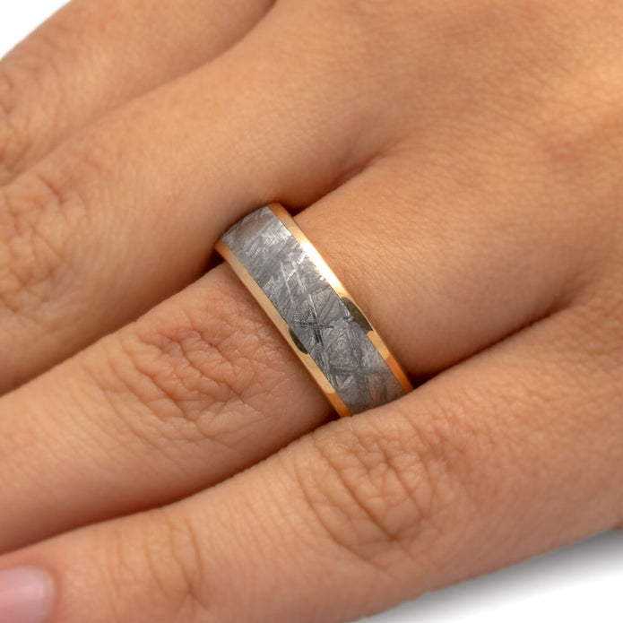 Solid Gold Meteorite Men's Wedding Band, 7mm Ring