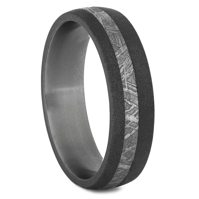 Men's Meteorite Wedding Band With Sandblasted Titanium