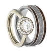 Materials in Gibeon Meteorite Wedding Ring Set, White Gold Halo Engagement Ring and Tulipwood Wedding Band