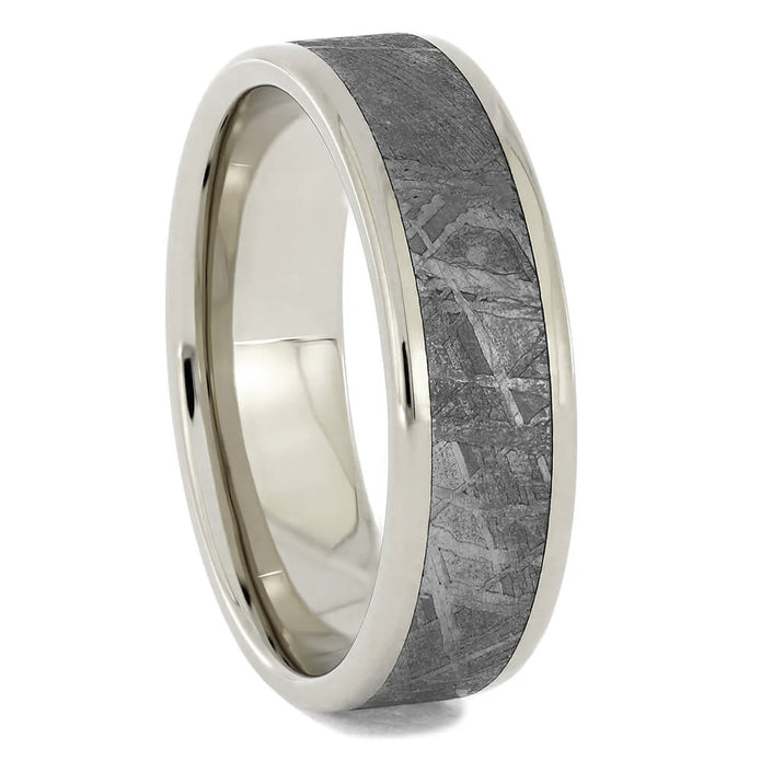 Materials in Solid White Gold Meteorite Wedding Ring Set