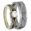 Meteorite Wedding Rings, Moissanite Engagement Ring & Wedding Band