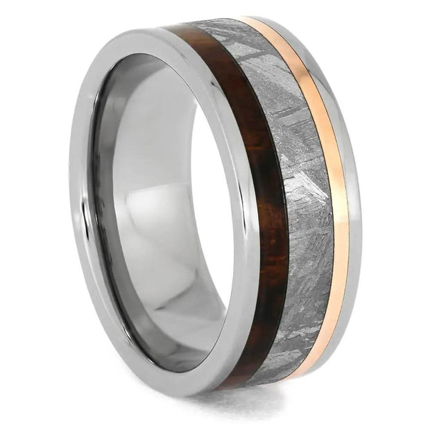 Meteorite Ironwood and Copper Ring in Titanium Band