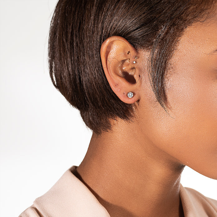 These 14k yellow gold, 5 mm round Moissanite by Charles & Colvard earrings are a staple for every jewelry box. Set in a traditional four prong friction back post style, these stud earrings feature 1 ctw total diamond equivalent weight.