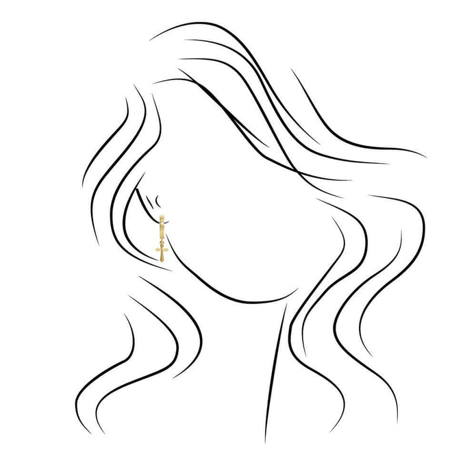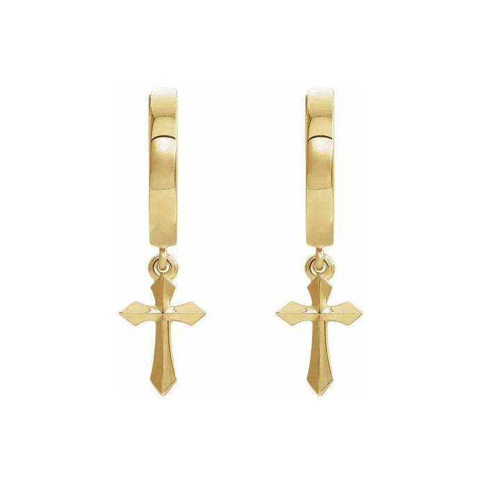 Symbolize your love and devotion with these dangle, hoop earrings with tiny cross symbol. Or, gift them to your favorite person for any special occasion. Crafted in perfectly polished 14k yellow gold.