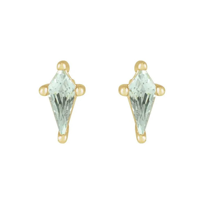 So small, but amazing, these unique shield cut green sapphire earrings are quite stunning. Their unique shape draws the eye while the subtle hue can coordinate well with many other colors.