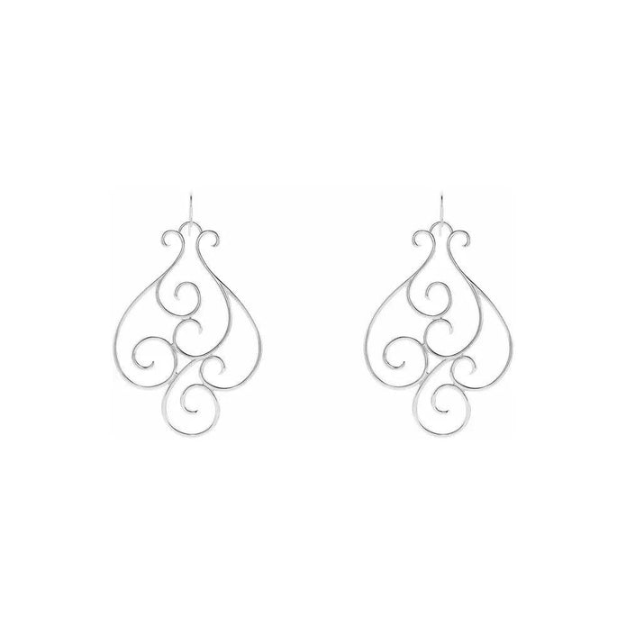 Stunning and swirling, these dangle earrings feature a scroll pattern. Handcrafted in polished 14k white gold just for you. Statement earrings for your wedding or a special formal occasion.