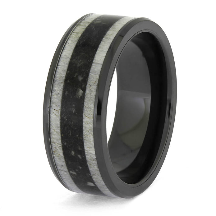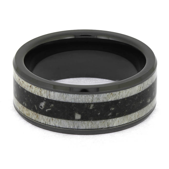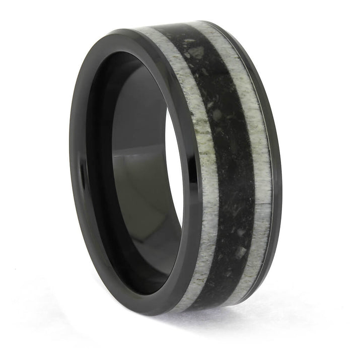 Materials in Antler and Ashes Memorial Ring in Black Ceramic