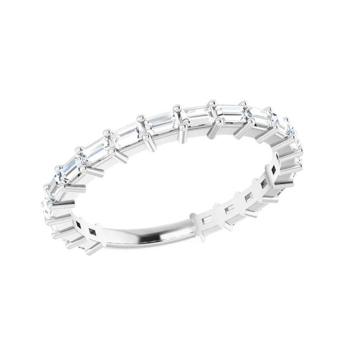 A perfect line of beautiful baguettes decorates this stunning band. Wear it along with other stackable bands or pair it with an engagement ring to create your own unique bridal set.