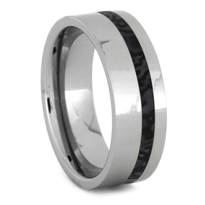 If you're looking for a stunner of a ring, look no further than this bright blue dinosaur bone featuring black veins.