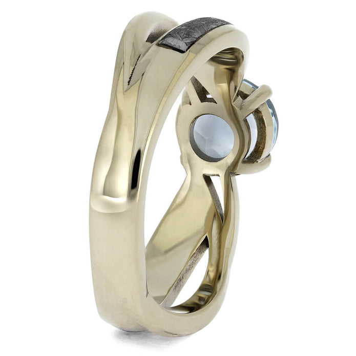 Sky Blue Topaz Solitaire Engagement Ring with Meteorite Inlays