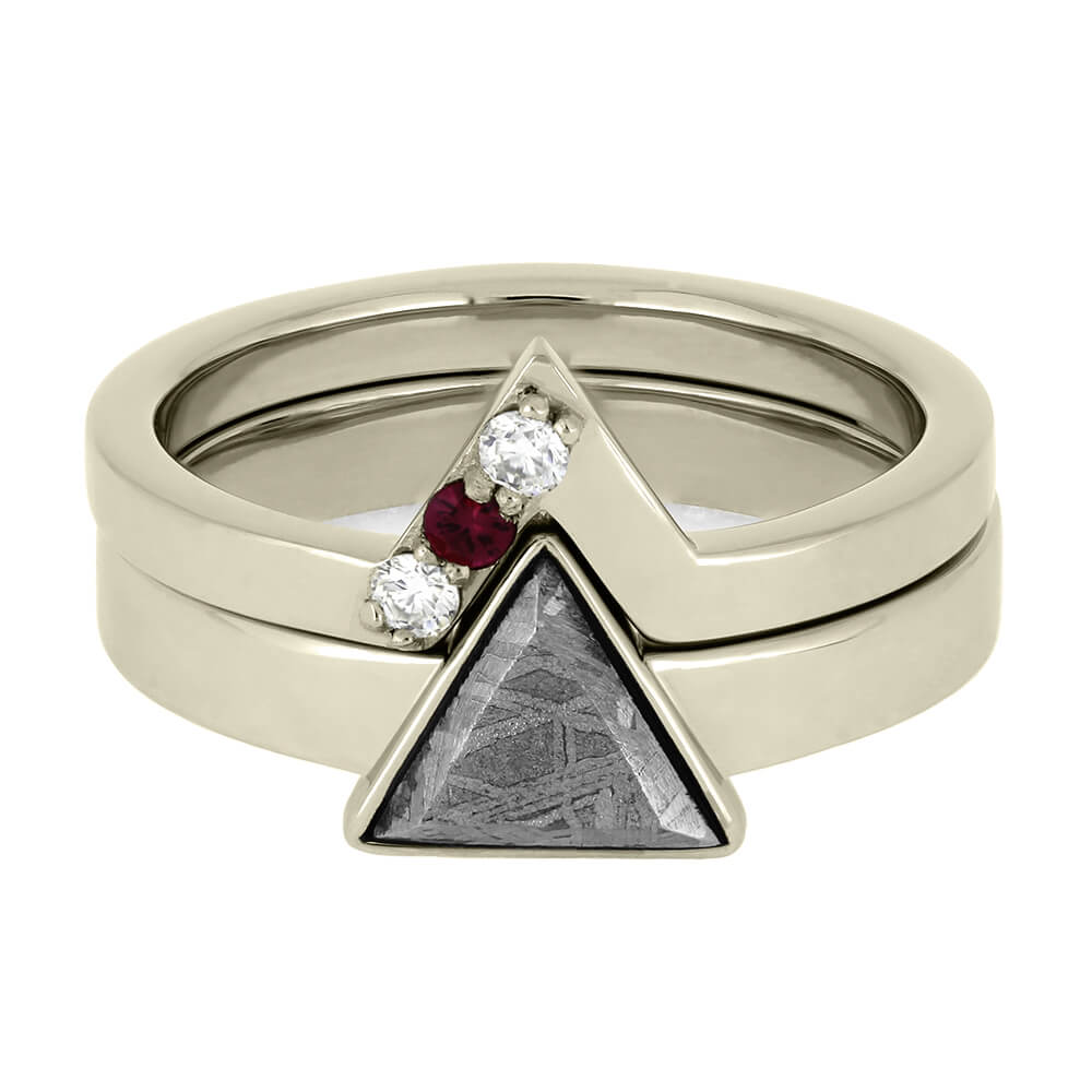 Bridal Set With Triangle Meteorite Engagement Ring & Matching Band
