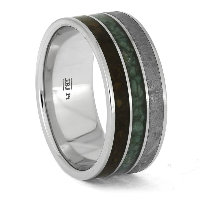 Materials in Chrysocolla, Meteorite and Dinosaur Bone in Platinum Band