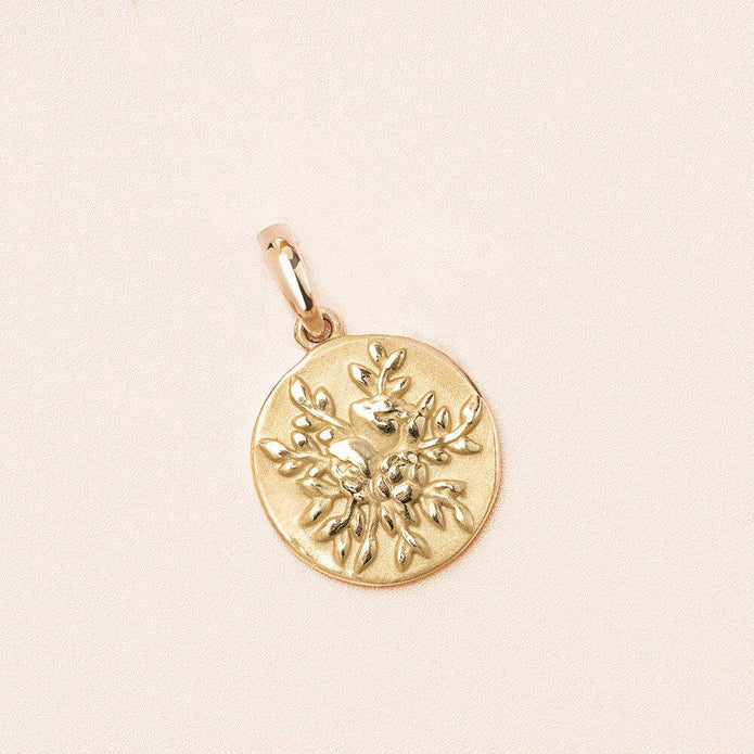 This stunning circle pendant features a raised floral design and mixed finish. Purchase as a complete necklace that includes a coordinating chain or opt for only the pendant to pair with a favorite chain from your collection.