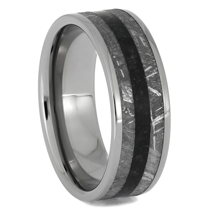 Tungsten Men's Wedding Band With Meteorite & Onyx