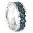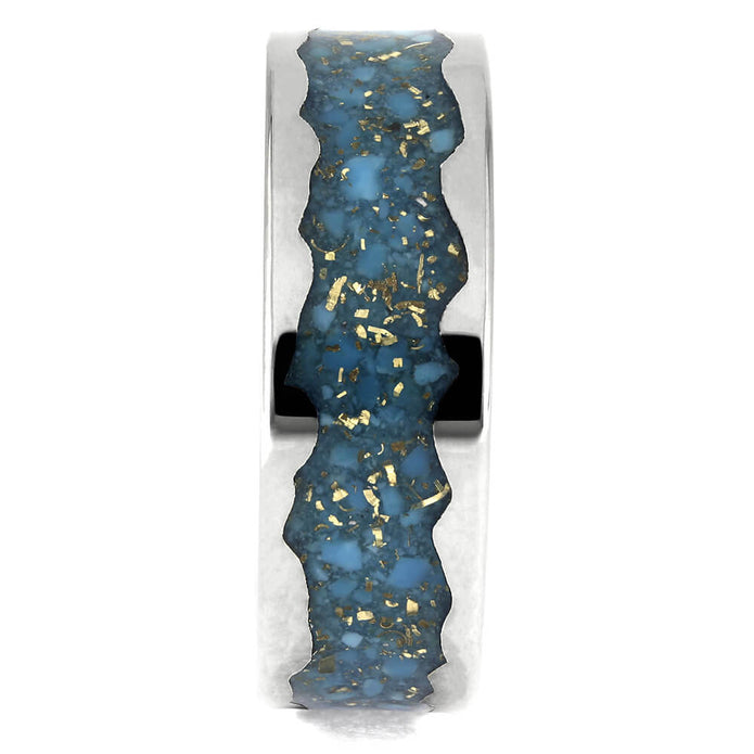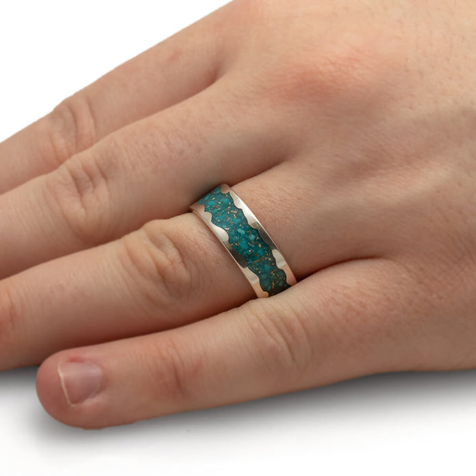 Crushed Turquoise Wedding Band, Wavy Sterling Silver Ring With Gold Shavings