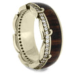 This diamond eternity wedding band is inlaid with king wood and has a unique wave-like pattern on one side. This style of eternity ring can be worn by either men or women. Celebrate your wedding anniversary with a custom made 14k white gold eternity ring to show that your love is forever.