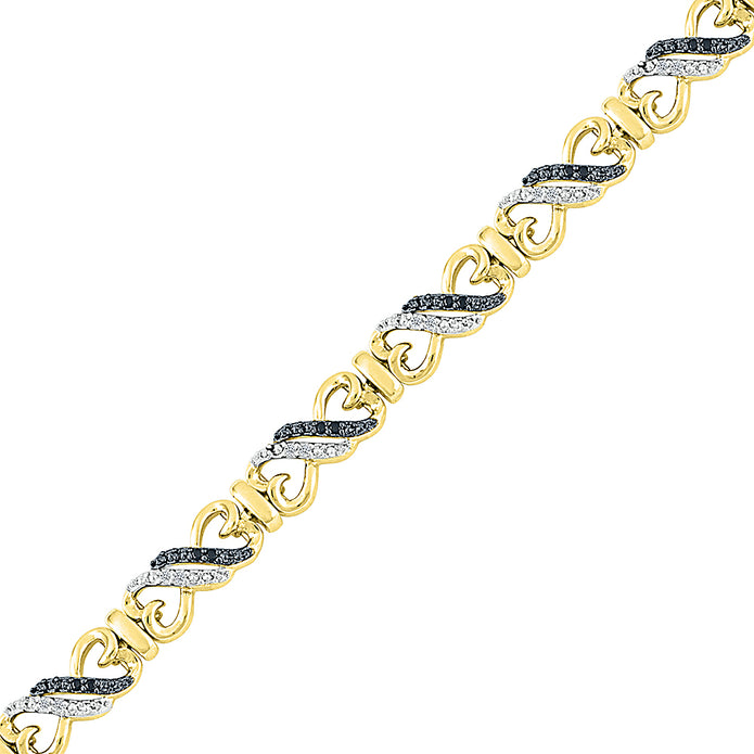 Make her stop in her tracks when you gift her this exquisite bracelet. Styled in sterling silver or gold, this black and white diamond heart bracelet features open heart-shaped links that are connected with alternating stones. Back to back hearts that resemble an infinity symbol to show her just how much you love her. This diamond bracelet sparkles with 1/4 ct. t.w. of diamonds and features a claw clasp.