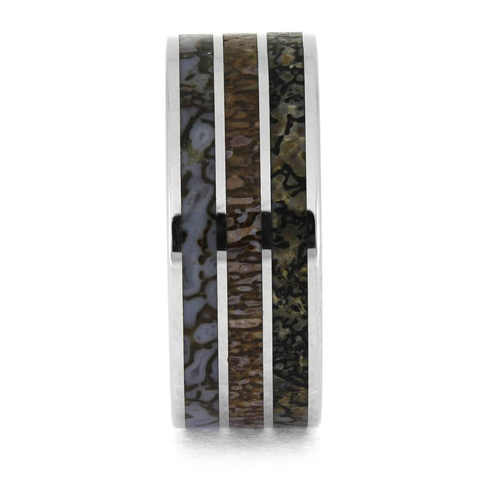 Materials in Dinosaur Bone Wedding Band with Three Inlays