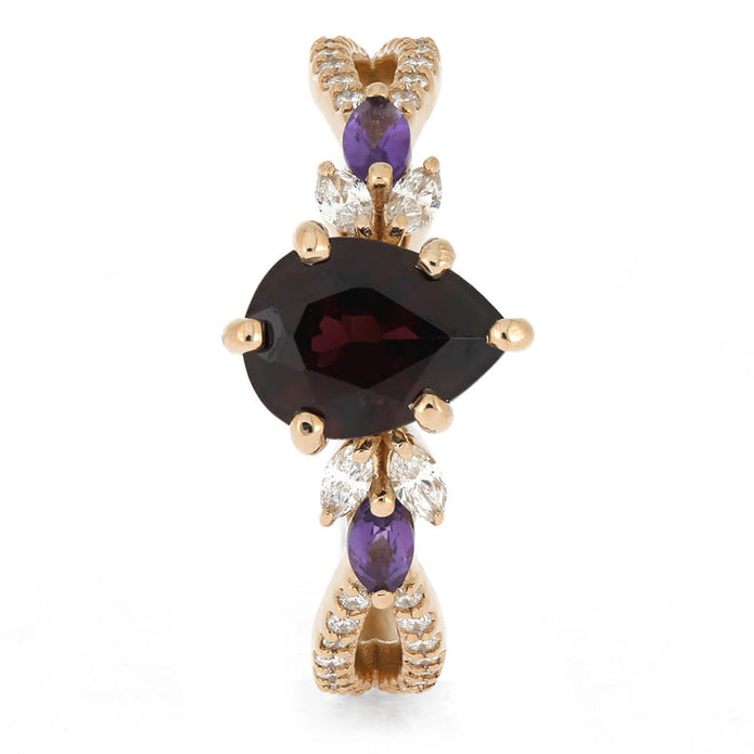 • Materials: Garnet, Amethyst, Diamond, and White Gold