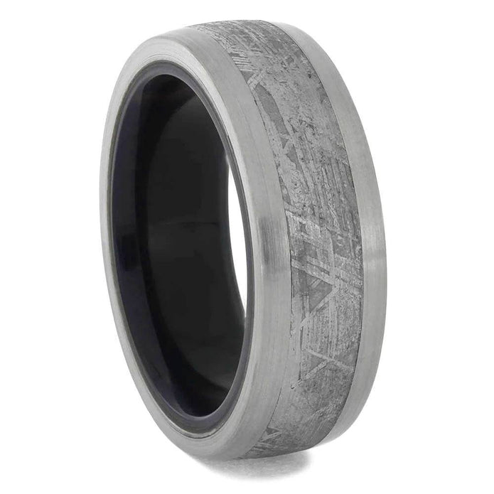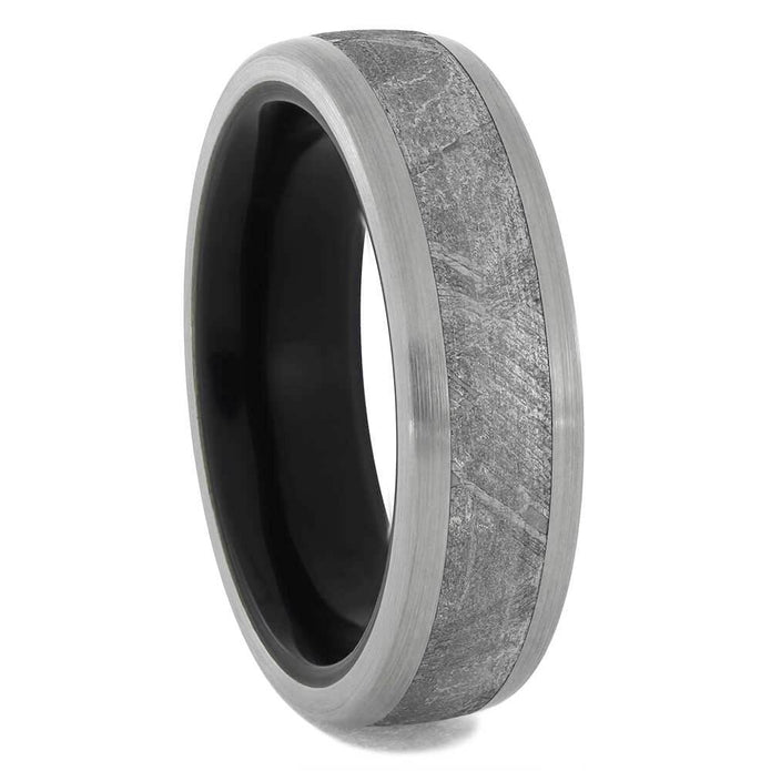 Gibeon Meteorite Wedding Band with Mokume Sleeve