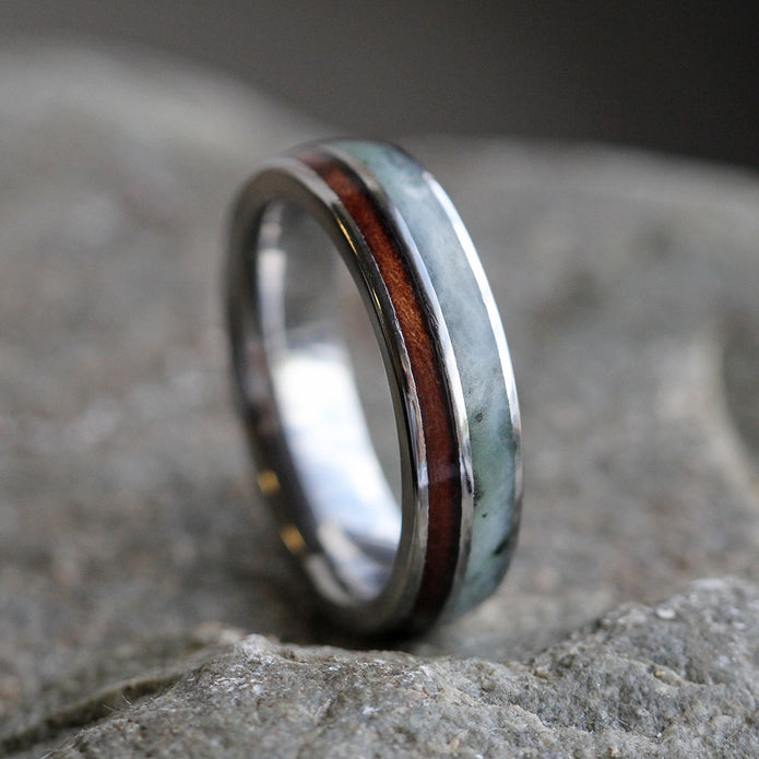 Materials in Green Jade Ring & Natural Redwood Wedding Band