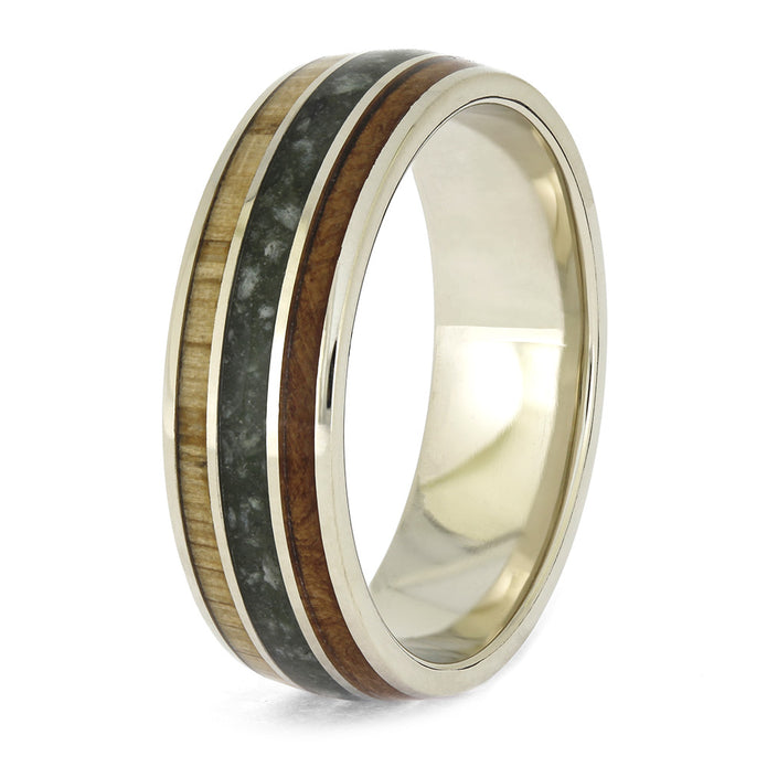 Jade Ring with Oak and Madrone Wood in White Gold